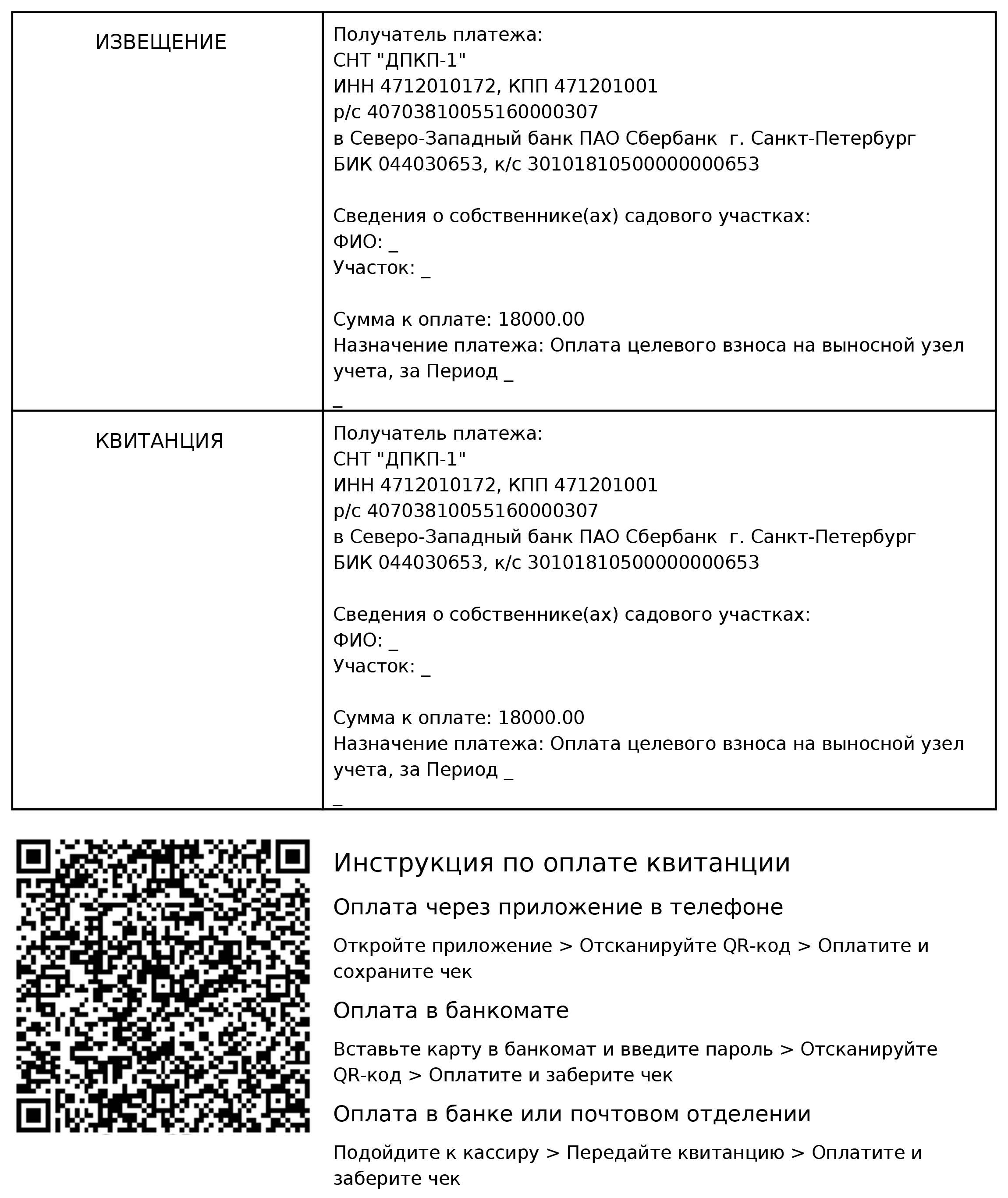 При оплате по QR-коду через Сбербанк онлайн - указываем : лицевой счет- номер участка, адрес-"Участок _"